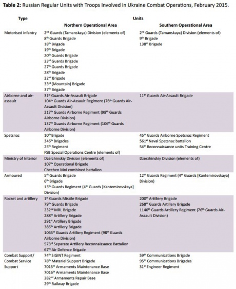 По состоянию на февраль 2015 года, утверждают исследователи, в Украине уже присутствовали 55 военных единиц.