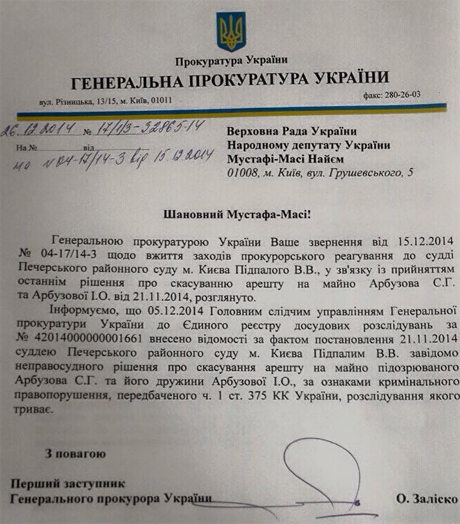 "Вы помните судью Печерского суда города Киева Вячеслава Пидпалого, снявшего арест со счетов Сергея Арбузова и его супруги. Мы тогда обратились с запросами в Генпрокуратуру и Высшую квалификационную комиссию судей. В ответ ГПУ возбудила уголовное дело по факту заведомого неправомерного решения", - напомнил он.
