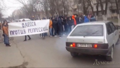 В Одессе группа лиц спортивной наружности инсценировала "массовые беспорядки" под лозунгами "освобождения Одессы от репрессий".