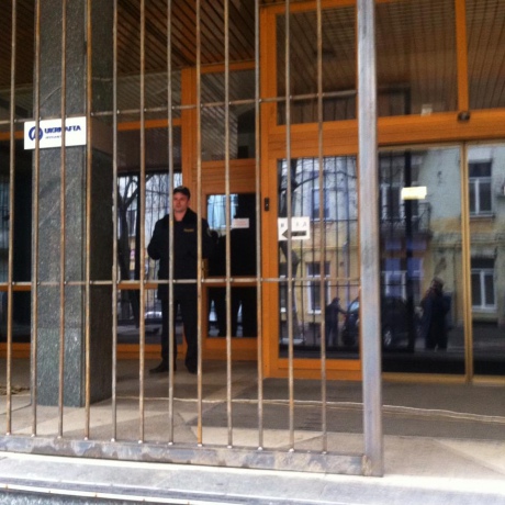 В Киеве здание "Укрнефти" в Нестеровском переулке обносят решеткой, в здании - "бойцы неизвестного батальона".