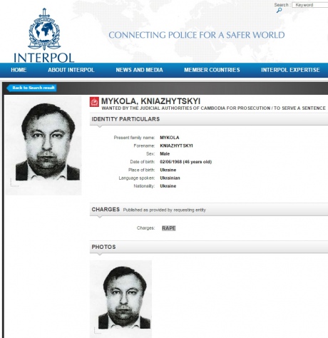 На сайте указано, что Княжицкого разыскивают за изнасилование.