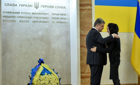 | Порошенко с вдовой убитого капитана Мандзика. фото АП |