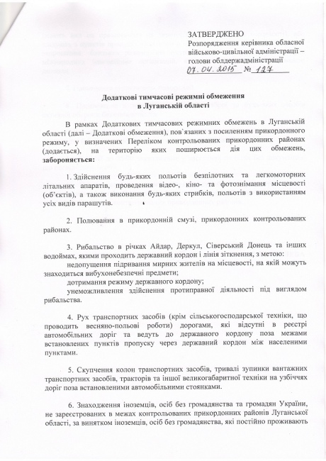 Глава Луганской военно-гражданской администрации Геннадий Москаль ввел на большей части Луганщины временные режимные ограничения.