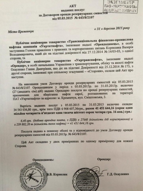 31 марта "Укртатнафта" Коломойского получила от УНТ еще более 41 миллиона за аренду емкостей в Кременчуге.