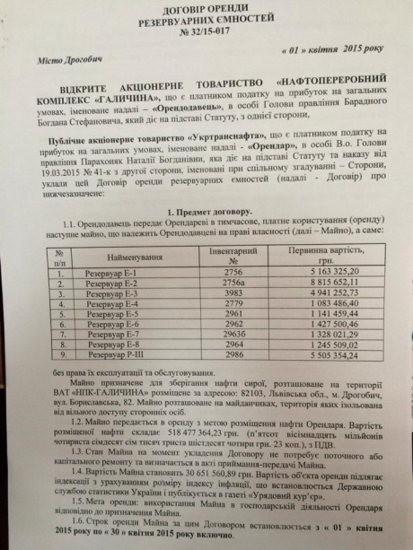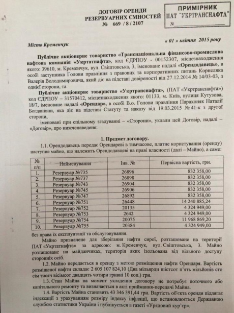 Так 18 марта за подписью уже уволенного ставленника Коломойского Александра Лазорко УТН заплатила ПАО "Нефтехимик Прикарпатья" более 9 миллионов гривен за аренду резервуваров в городе Надвирна.