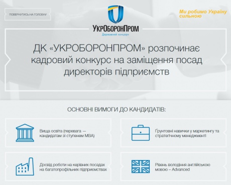 Так, например, руководителей ищут для Житомирского и Киевского бронетанковых заводов, Харьковского КБ по машиностроению имени А.А. Морозова, луцкого ремонтного завода "Мотор", Харьковского завода специальных машин, Николаевского бронетанкового завода и других.