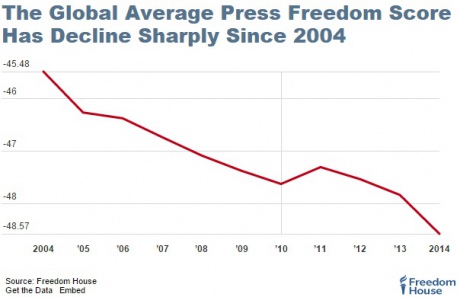 Общемировой показатель свободы слова Freedom House также назвала худшим за более чем 10 лет.