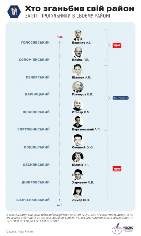 Все вышеперечисленные депутаты прогуляли от четверти до половины заседаний Киевсовета.