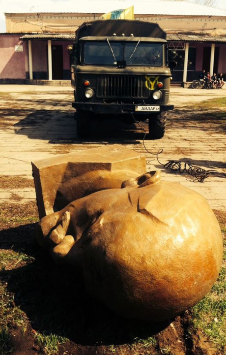 1 мая в с.Нижнетеплое (Станично-Луганский район, Луганская область) бойцы батальона "Айдар" снесли монумент Ленину.
