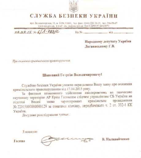 Служба безопасности открыла уголовное производство по факту полетов самолетов российской авиакомпании "Грозный Авиа" в Крым.