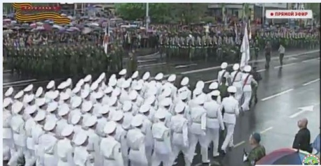 По главной улице Донецка сначала прошли маршем различные "подразделения армии" боевиков.