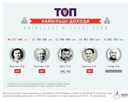 С таким показателем он входит в пятерку депутатов Киевсовета с наибольшим доходом.