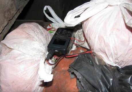 На место происшествия немедленно выехала оперативно-следственная группа, которая обнаружила 25 пластиковых пакетов с взрывной смесью и детали самодельного взрывного устройства - провода, соединенные с мобильным телефоном, и электрический датчик движения.