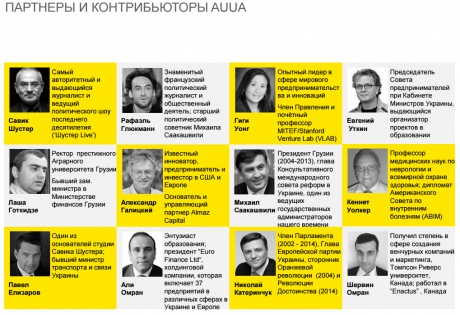 Саакашвили назван в презентации как основной контрибьютор факультета госуправления. Основным контрибьютором факультета искусства коммуникации и медиа должен стать Савик Шустер.