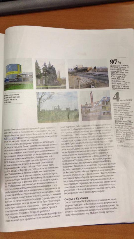 Однако РБК предоставило "Украинской правде" фотографии статьи в российском "Forbes" об ИСД и Внешэкономбанк.