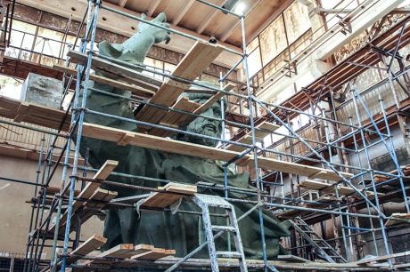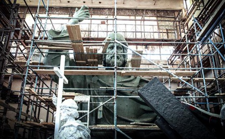 В Москве показали глиняную модель 12-метрового памятника князю Владимиру, где есть и сцены "крещения россиян в реках".