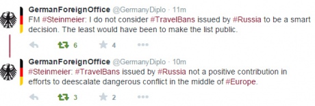 Министр иностранных дел Германии Франк-Вальтер Штайнмайер раскритиковал введенный Россией "черный список" в отношении европейских политиков.