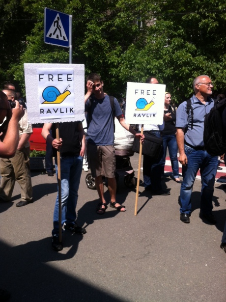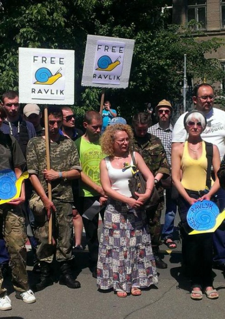 Люди держат в руках надписи "Free Ravlyk".