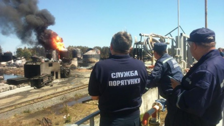 По данным мэра Василькова Сергея Сабова, по состоянию на 14.30 горела одна емкость с горючим БРСМ-Нафта.