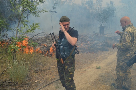 "Последние дни на Луганщине держится жаркая погода, днем до 35 градусов тепла, поэтому от снарядов моментально загорелся сосновый лес", - отмечает Москаль.
