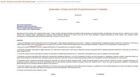 В сети нашелся только приказ Жариновой от 27 февраля 2015 года. Согласно которому Жаринова уволила самого себя от люстрационной проверки: "Провести в Государственной службе интеллектуальной собственности Украины (далее - ГСИСУ) проверку, предусмотренную Законом работников ГСИСУ и руководителей государственных предприятий, организации, относящиеся к сфере управления ГСИСУ, кроме Председателя ГСИСУ ...".