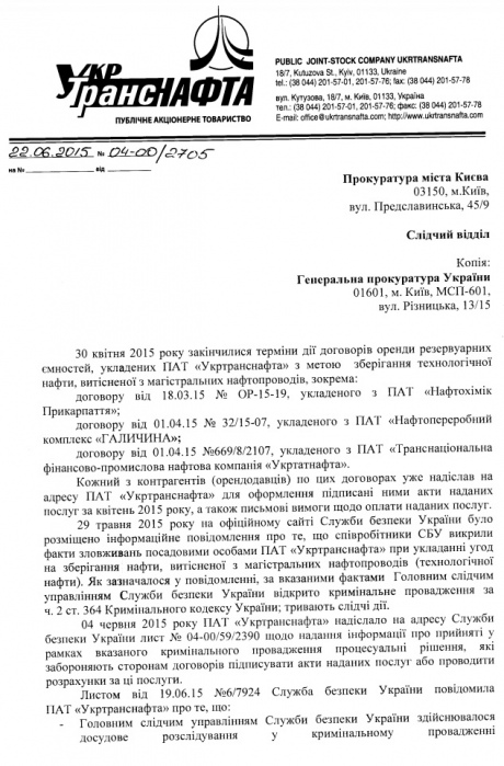 Об этом говорится в письме компании к ГПУ, которое есть в распоряжении "Украинской правды".