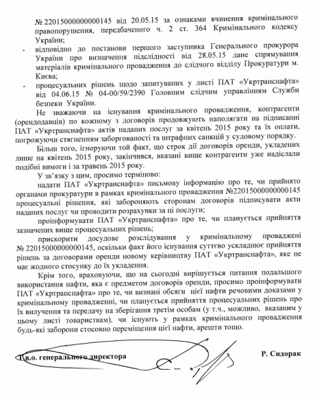 В связи с этим "Укртраснафта" просит ГПУ срочно ответить, предусматривают ли возбуждены уголовные дела запрет на подписание актов выполненных работ и их оплату, а если нет – планируется ли принятие такого запрета.