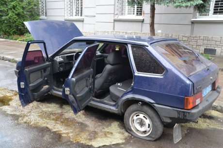 В Львове около 7 утра в четверг у здания Франковського отдела Львовского горуправления внутренних дел взорвался служебный автомобиль.