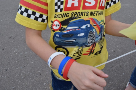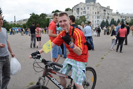 В Краматорске во время празднования Дня Конституции и Дня молодежи гостям праздника раздавали браслеты в цветах российского флага.