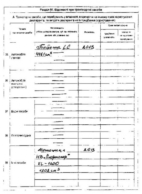 Грицак также задекларировал автомобиль Тойота и мотоцикл (оба транспортных средства – 2013 года выпуска).