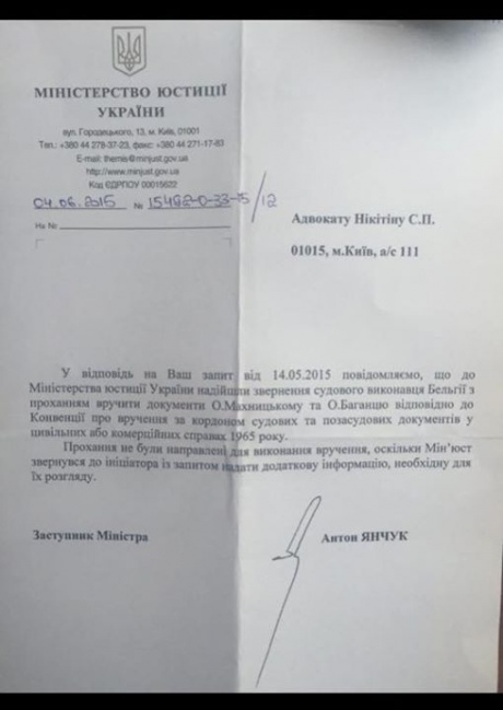 | Ответ Минюста Украины относительно Махницкого и Баганца. Из Facebook Портнова |
