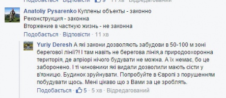 После появления публикации на УП в комментарии под на ФБ нашей страницы Писаренко высказался по поводу участка: