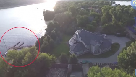 Автомайдан снял на видео этот дом с высоты птичьего полета. На видео можно увидеть машины, лодки, гаражи в здании, а сам дом выглядит как жилой.