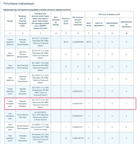 Согласно данным, размещенным в государственных реестрах, членом правления "Луганськдрук", который был депутатом от ПР, является Владимир Медяник. Когда-то он был в партии "Наша Украина, затем в КПУ, а потом уже перешел в ПР.