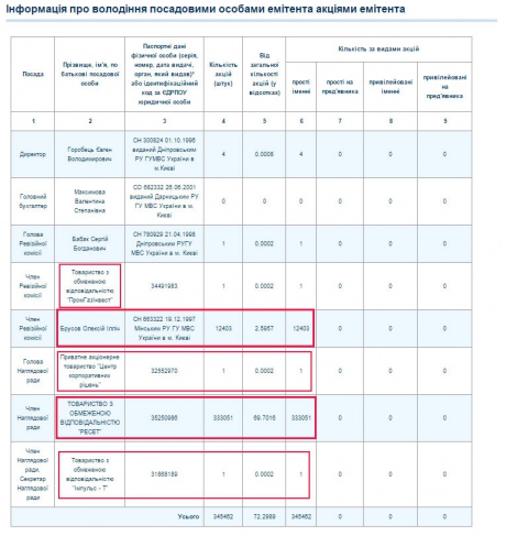 Среди владельцев акций ПАО Киевэнергоремонт является ООО "Промгазинвест". Ее основатели: ОАО "Центр Корпоративных решений" и ООО "Киевэнергострой". Бенефициарным владельцем указан опять же Иван Плачков, а владельцем существенного участия - Брусов Алексей Ильич.