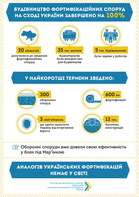 В Министерстве регионального строительства сообщили, что строительство фортификационных сооружений на востоке Украины завершено.