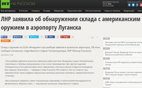 Накануне глава следственного отдела так называемой "генпрокуратуры" боевиков из "ЛНР" Леонид Ткаченко рассказал, что на развалинах луганского аэропорта якобы нашли ПЗРК "Стингер" американского производства. Это заявление распространили российские СМИ, заявив о целом складе американского оружия в Украине.
