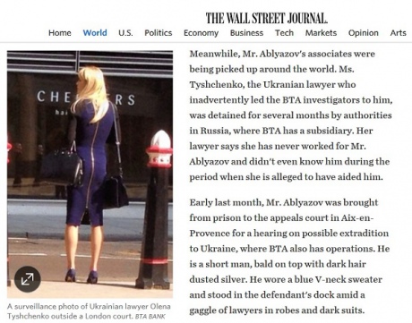 "Впоследствии сама Тищенко была арестована в Москве, но, признав свою вину и сдав Аблязова, вышла на свободу. Все это подробно изложено в решениях британского суда и публикация ведущих западных изданий - вплоть до фотографий детективов, которые вели за ней наблюдение", - отмечает Лещенко.
