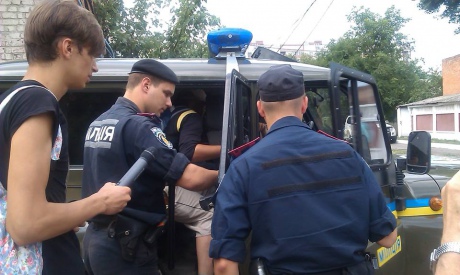 "Адвокат и другие представители правозащитной организации "Сич"спортивной внешности, которые прибыли на место происшествия в милицию и пытались отвести задержанных в сторону для консультации, поехали вслед за задержанными", - говорится в сообщении.