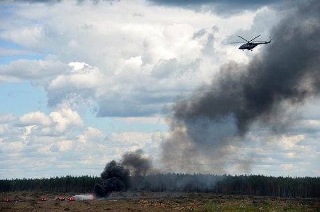 Под Рязанью (РФ) на полигоне "Дубровичи" один из вертолетов пилотажной группы "Беркутов" разбился при выполнении одного из элементов пилотажа.