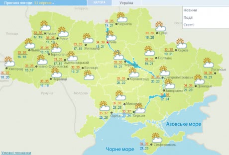В Киеве - без осадков, температура ночью 17-19°, днем 32-34.