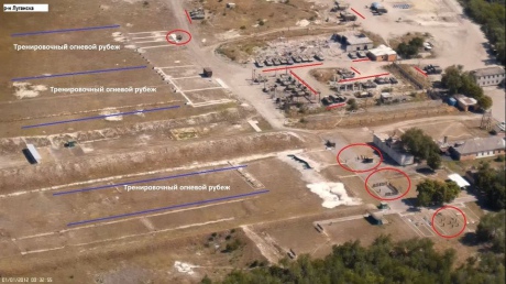 "На фотографиях, две базы российских террористических войск, по совместительству эти базы являются тренировочными полигонами. Первая база расположена под Луганском (12км от наших позиций), вторая под Дебальцево (18км от наших позиций)", - разъяснили активисты.
