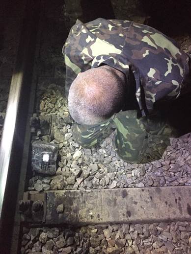 "Сотрудники СБУ с привлечением бойцов спецподразделения "Альфа" задержали организатора группы непосредственно после закладки под рельсы самодельного взрывного устройства мощностью 2,5 кг в тротиловом эквиваленте", - сообщили в СБУ.