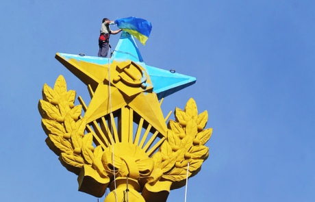 Как известно, 20 августа 2014 года руфер Павел Ушевец, более известный как руфер Мустанг покрасил звезду на Котельнической набережной в цвета украинского флага.
