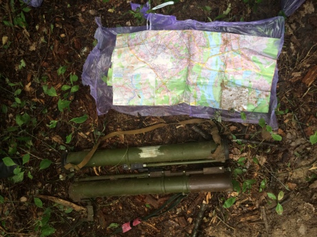 Благодаря совместным и согласованным действиям правоохранительных органов в лесной полосе города Киева вблизи военных частей Государственной пограничной службы был обнаружен тайник с двумя боеприпасами РПГ-22 и РПГ-26, а также карта местности, на которой запечатлены предполагаемые объекты поражения.