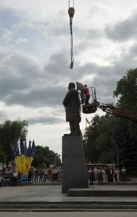 В Змиеве Харьковской области демонтировали памятник Владимиру Ленину.