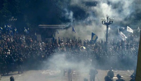 Как сообщалось, в понедельник после того, как депутаты приняли в первом чтении изменения в Конституцию в части децентрализации, митингующие пошли в наступление на парламент.