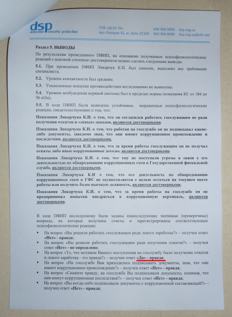 Результаты теста Ликарчука на детекторе лжи были сфальсифицированы