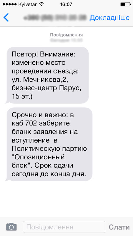 В подтверждение своих слов собеседник переслал "Украинской правде" тексты сообщений, которые рассылались.