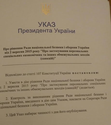 Таким образом президент утвердил решение СНБО от 2 сентября, которым санкции вводятся на один год.